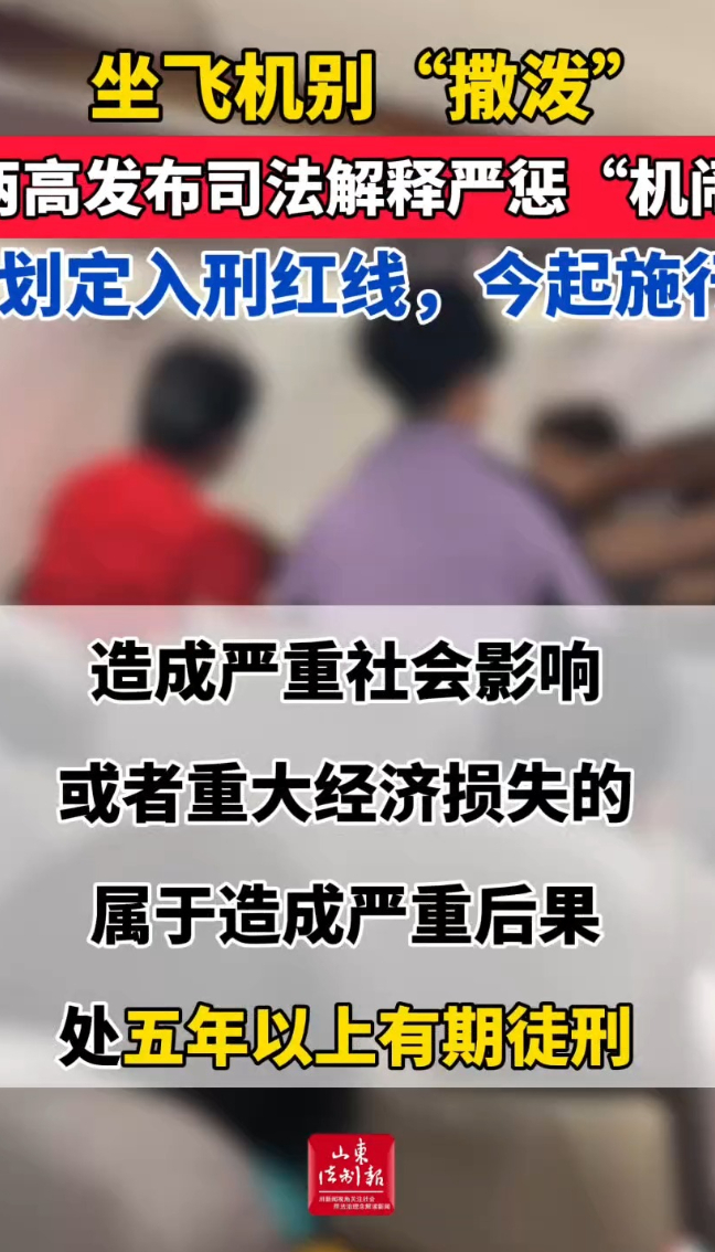 坐飞机别“撒泼”,两高发布司法解释严惩“机闹”,划定入刑红线,今起施行