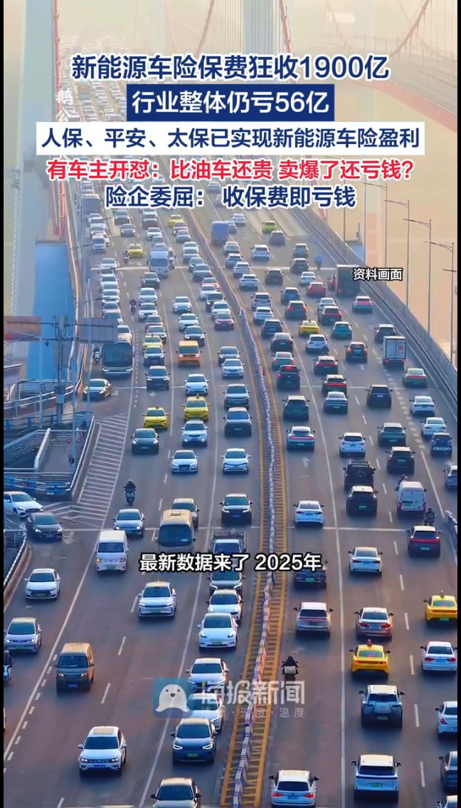 最新数据来了,2025年,我国新能源车险保费狂收1900亿,承保车辆超4300万辆,涨了四成!但扎心的是,行业整体承保亏损56亿,虽然比去年少亏1个亿,可还是亏。