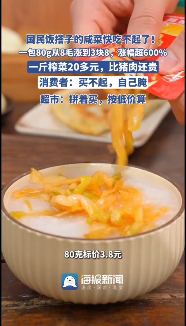 主播说丨国民饭搭子的咸菜快吃不起了! 一包80g从8毛涨到3块8,涨幅超600%