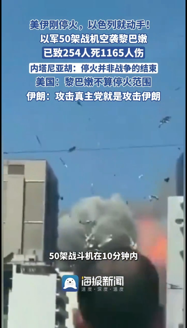 美伊临时停火生效第一天,以色列却对黎巴嫩发动了本轮冲突以来最大规模空袭。以军称,50架战斗机在10分钟内,向100个目标投掷约160枚炸弹,已造成至少254人死亡、1165人受伤。更讽刺的是,美国辩称黎巴嫩未被纳入停火范围,伊朗则警告:攻击黎真主党就是对伊朗的攻击,准备作出沉重回击。以色列总理直言,停火只是实现目标的一个阶段,“手指始终扣在扳机上”。