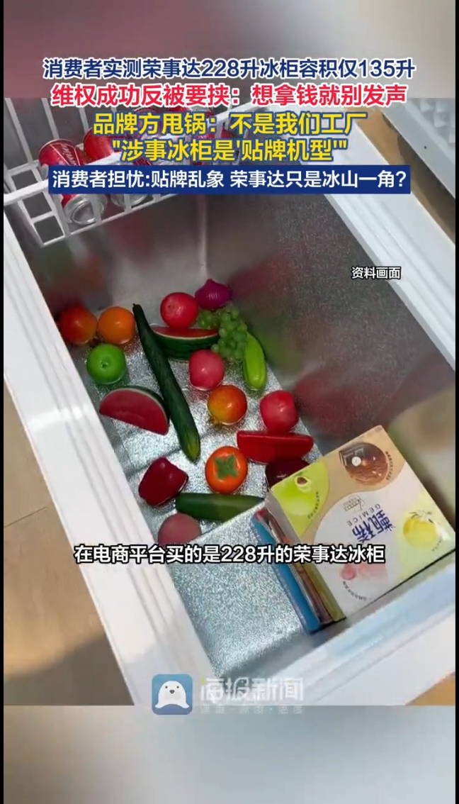 主播说丨消费者实测荣事达228升冰柜容积仅135升,维权成功反被要挟:想拿钱就别发声
