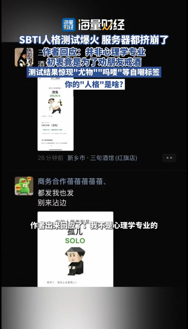 海量财经丨SBTI人格测试爆火!作者: 初衷是为了劝朋友戒酒
