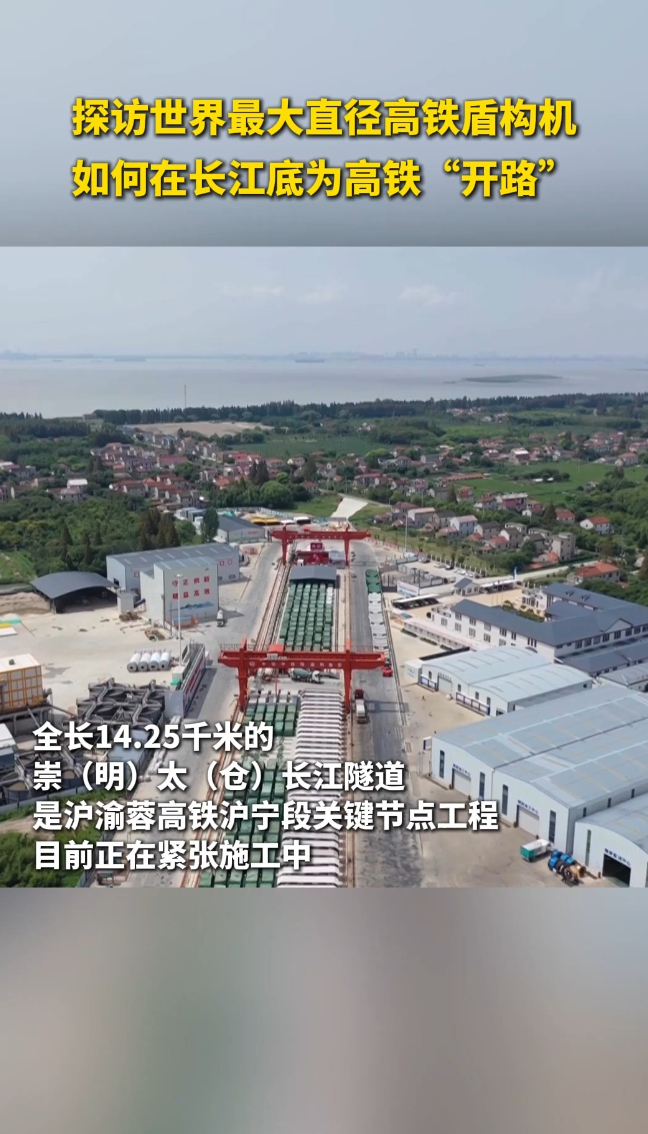 探访世界最大直径高铁盾构机:如何在长江底为高铁“开路”新华社 16:21全长14.25千米的崇(明)太(仓)长江隧道是沪渝蓉高铁沪宁段关键节点工程,目前正在紧张施工中。近日,由我国自主研制的世界最大直径高铁盾构机“领航号”,历经23个月的安全掘进,已完成长江水下段11.18千米的施工任务,从上海崇明顺利抵达江苏太仓。让我们跟随镜头,一起去看看这条横穿长江入海口的地下“巨龙”。
