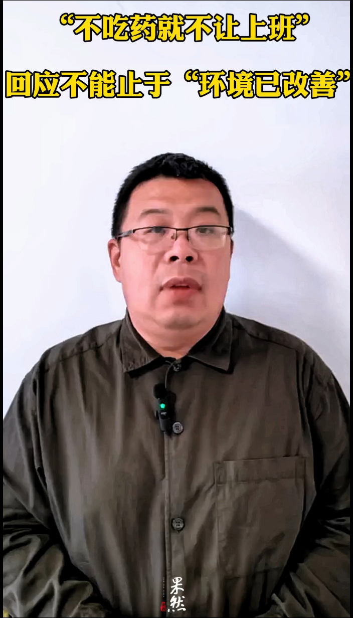 “不吃药就不让上班”,回应不能止于“环境已改善” 17:17 原创齐鲁晚报·齐鲁壹点客户端 微信扫码扫码下载客户端监管部门的职责,不仅是督促企业整改环境,还要对企业的违法违规行为依法追责,维护法律法规的严肃性。涉事企业究竟是不是“惯犯”,如何处罚企业,受影响员工怎么补偿,这些问题,绝不能含糊其辞、不了了之。