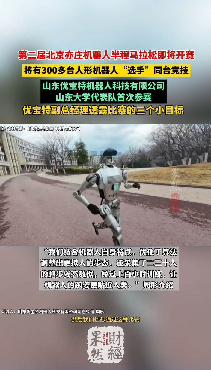 数智新工具|鲁企首次参加机器人半马,优宝特有这三个小目标 17:17 原创齐鲁晚报·齐鲁壹点客户端 微信扫码扫码下载客户端4月19日,第二届北京亦庄机器人半程马拉松将正式鸣枪开赛。而这也是山东省首次有企业与高校参赛。山东优宝特机器人科技有限公司(以下简称“优宝特”)与山东大学参赛团队分别有两支队伍参加比赛。优宝特副总经理周彤透露:团队有三个小目标:让一台机器人全程无替换完赛、冲击最拟人的跑姿奖、为济南智造宣传。