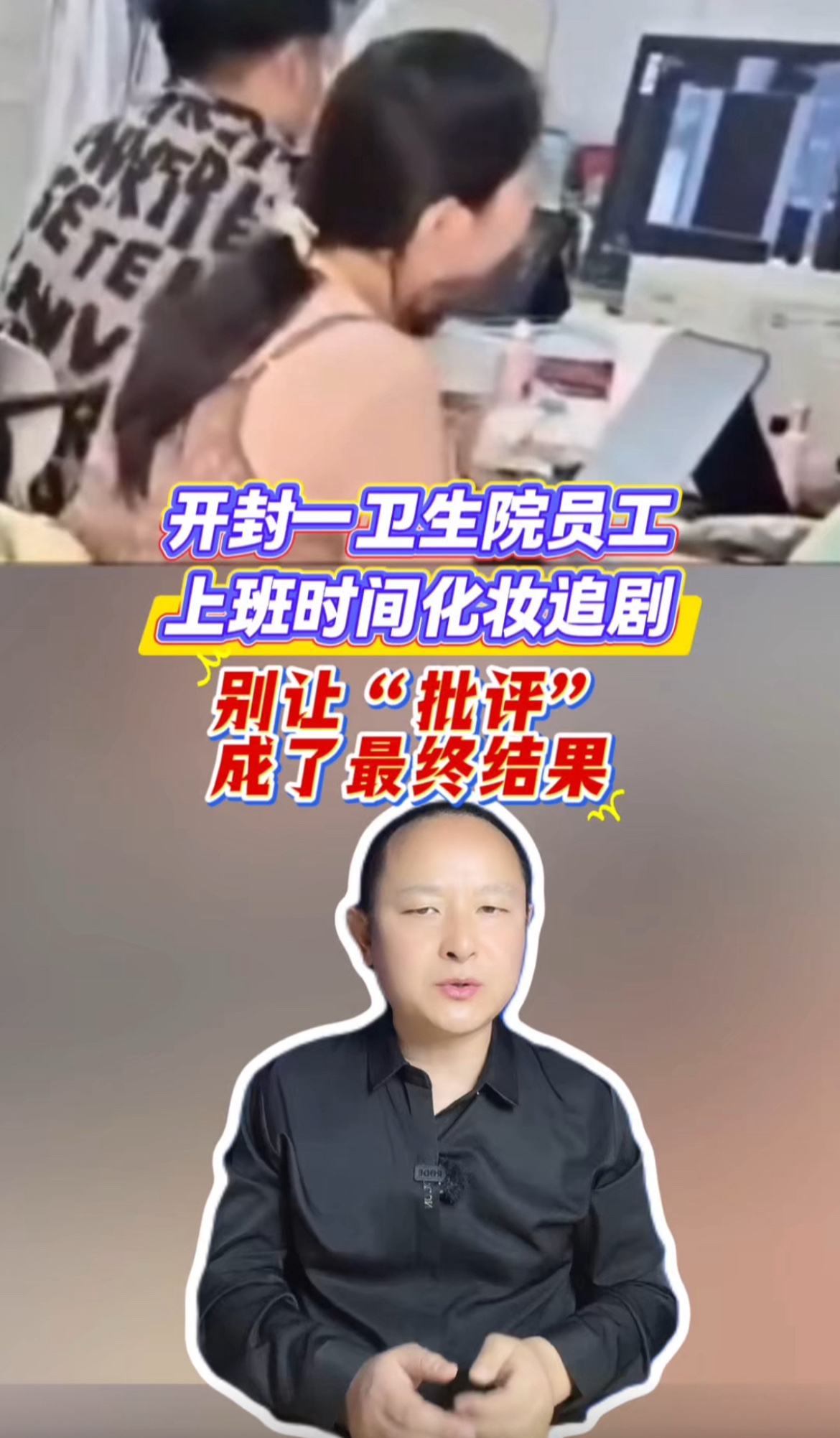 半岛时评| 开封一卫生院员工上班时间化妆追剧,别让“批评”成了最终结果半岛新闻 | 昨天21:43 原创半岛都市报·半岛新闻客户端 微信扫码扫码下载客户端半岛时评| 开封一卫生院员工上班时间化妆追剧,别让“批评”成了最终结果(半岛全媒体记者 姜瑞胜 宋总业)