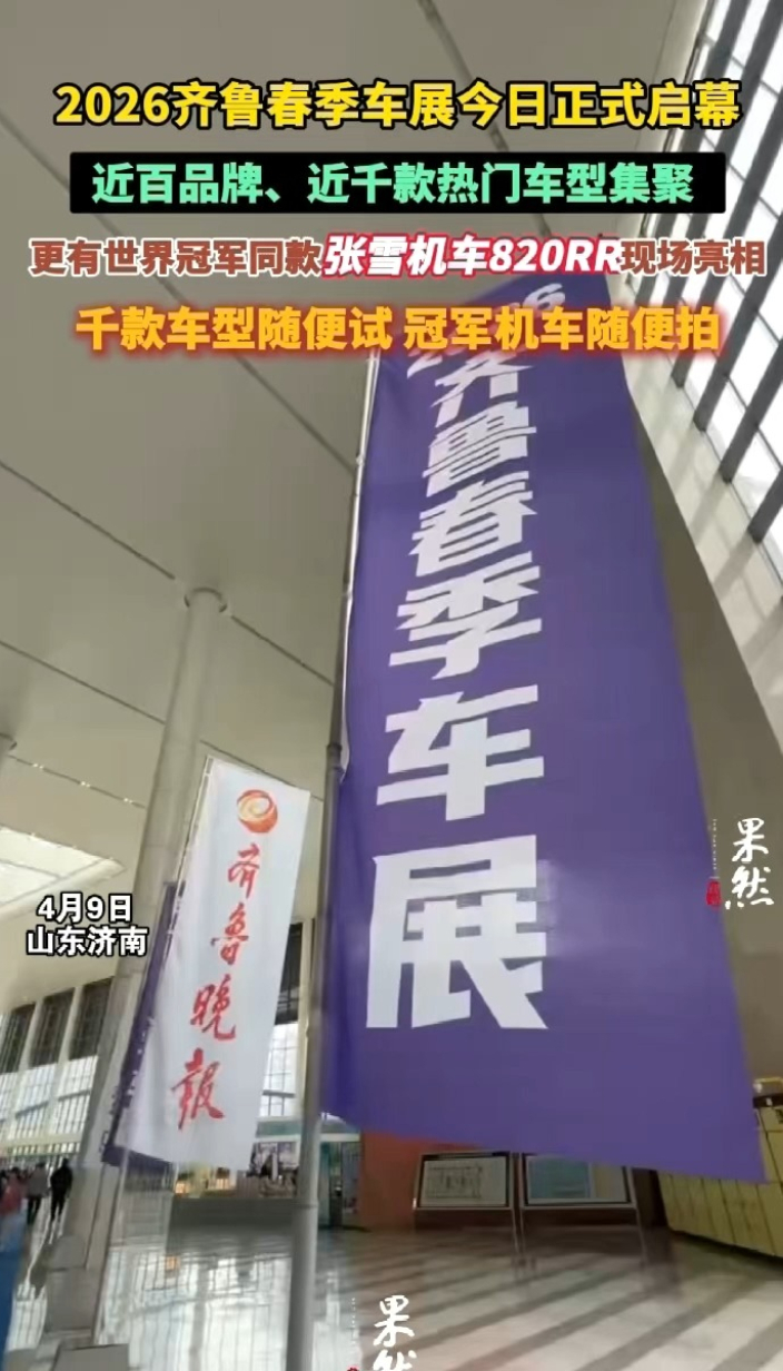 果然视频|张雪机车冠军车型重磅亮相!2026齐鲁春季车展今日启幕齐鲁晚报·齐鲁壹点客户端 11:01原创4月9日,2026 齐鲁春季车展(第五十三届齐鲁汽车展览交易会)在山东国际会展中心隆重举办。本届车展汇聚近百个国内外汽车品牌、近千款热门车型,张雪机车冠军车型重磅亮相车展现场。本届车展将持续到4月13日,来现场,千款车型随便试,冠军机车随便拍! (齐鲁晚报·齐鲁壹点记者 胡晓雪 寇文奇 刁明杰 李英豪)