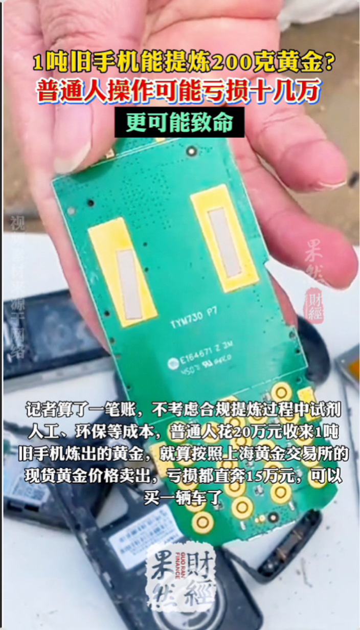 果然财经|1吨旧手机能提炼两百克黄金?普通人操作或亏损十几万
