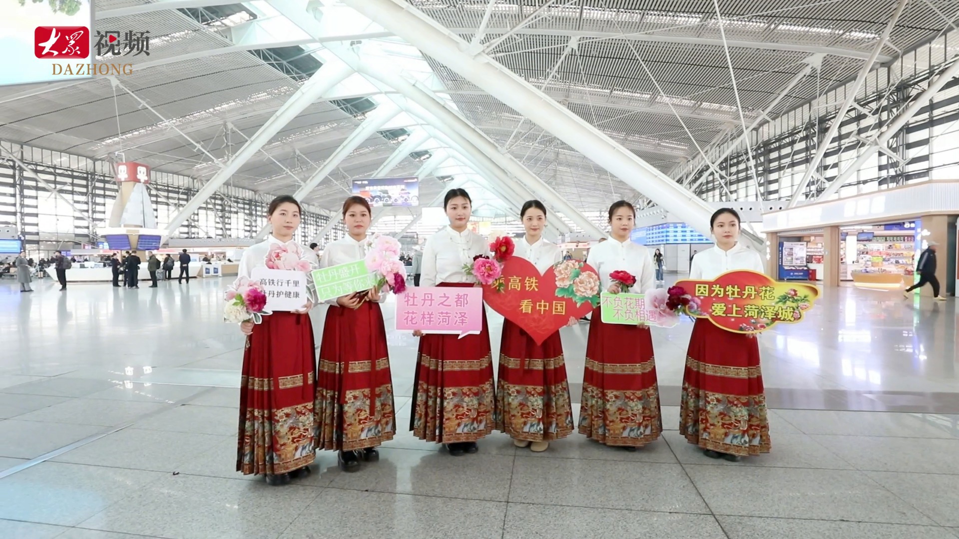 列车首发日以“乘高铁・赏国色・游菏泽”为主题,打造了沉浸式牡丹文化出行体验。雅致的牡丹插花点缀在车厢各处,餐吧升级为“牡丹主题餐吧”,供应牡丹鲜花饼、牡丹花蕊茶等特色美食茶饮;车内设置文化互动环节,由专人讲解菏泽牡丹历史、品种及节会亮点,邀请民间艺人现场展示牡丹剪纸、曹州面塑等国家级非遗技艺,并为旅客赠送牡丹文创产品。