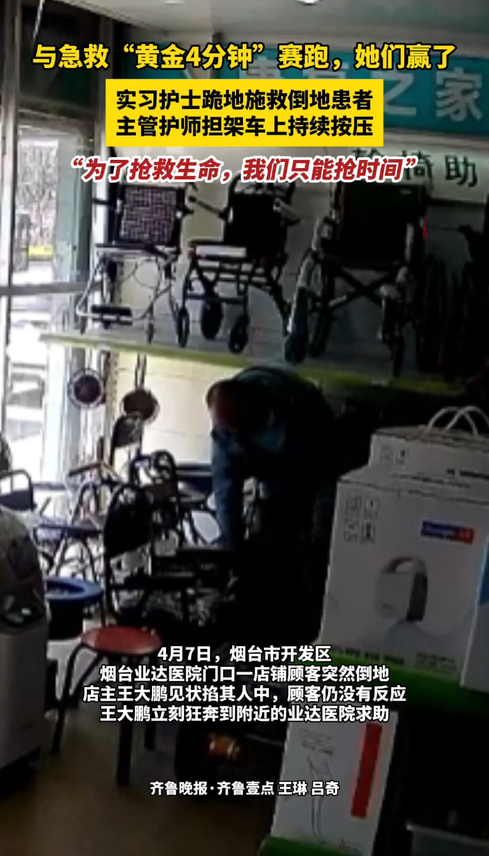 果然视频|与急救“黄金4分钟”赛跑,医护人员接力抢回一条人命齐鲁晚报·齐鲁壹点客户端 14:30原创4月7日,烟台业达医院门外的一家店铺内,一名男性顾客突然倒地,命悬一线。从这位顾客倒地到恢复自主心跳,在与“黄金四分钟”赛跑过程中,医疗器械店店主、18岁实习护士与急诊医护人员紧密联手,完成了一场惊心动魄的接力救援。目前,患者已清醒。 (齐鲁晚报·齐鲁壹点 王琳 吕奇)