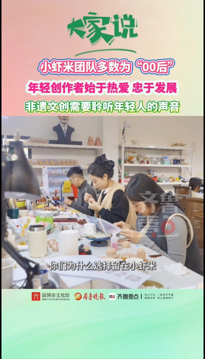 《大家说》第六期|王枝:非遗文创需要聆听年轻人的声音大众报业·齐鲁壹点 16:274月10日,《大家说》栏目第六期·主讲人王枝|小虾米团队多数为“00后”年轻创作者,大家因热爱相聚,为传承坚守。非遗文创的未来,需要认真聆听年轻人的声音。