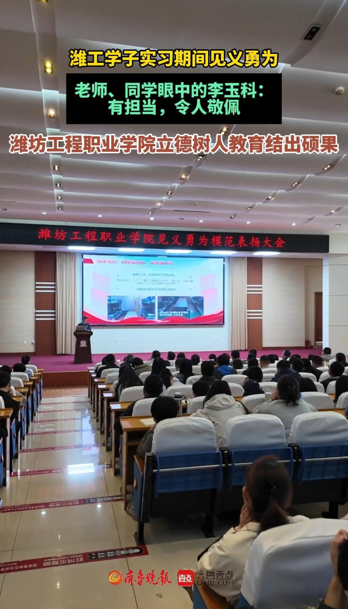 果然视频|老师、同学眼中的李玉科:有担当,令人敬佩齐鲁晚报·齐鲁壹点客户端 17:55原创4月9日,潍坊工程职业学院召开见义勇为模范表扬大会暨事迹报告会,表扬勇救轻生群众的学子李玉科。2025年12月,潍坊工程职业学院学生李玉科在上海市公安局闵行分局虹桥龙柏派出所特保中队实习期间,不顾个人安危,翻越桥栏施救轻生群众,不慎跌入冰冷河水仍坚持救援被评为上海市第九届见义勇为保安员。齐鲁晚报·齐鲁壹点 王钟玉