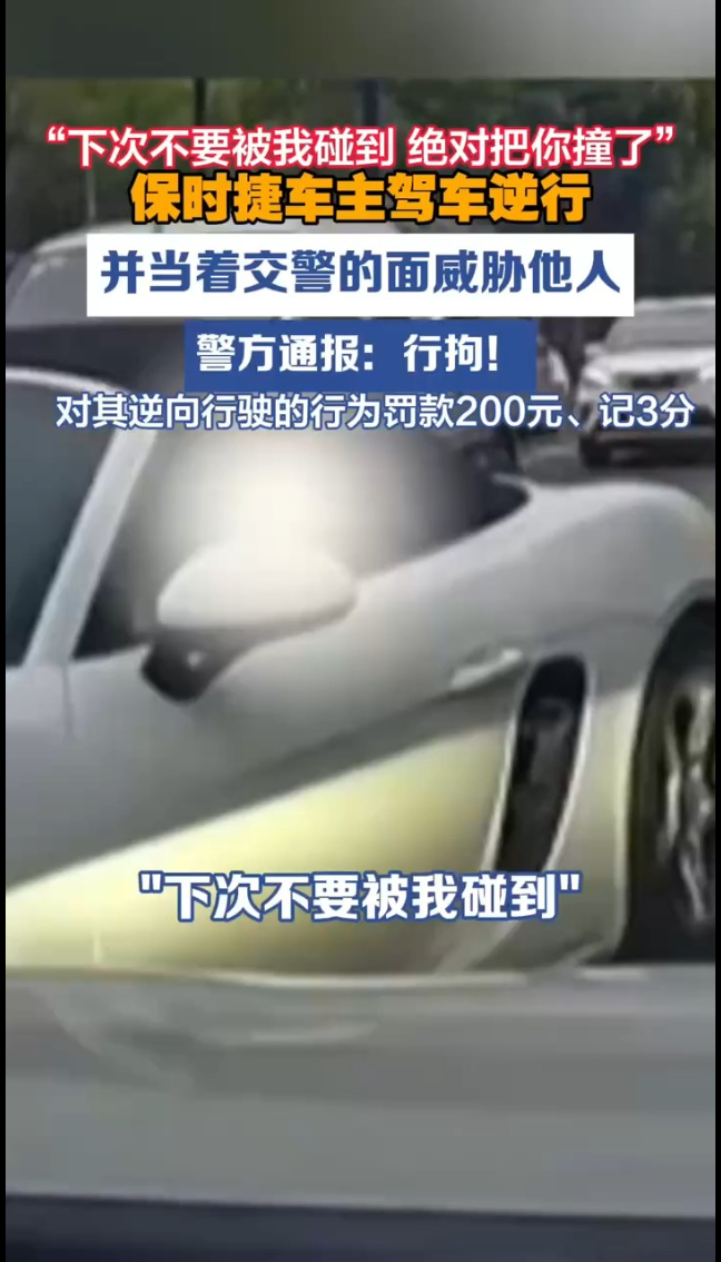 主播说 | 保时捷车主驾车逆行 并当着交警的面威胁他人 警方通报:行拘!