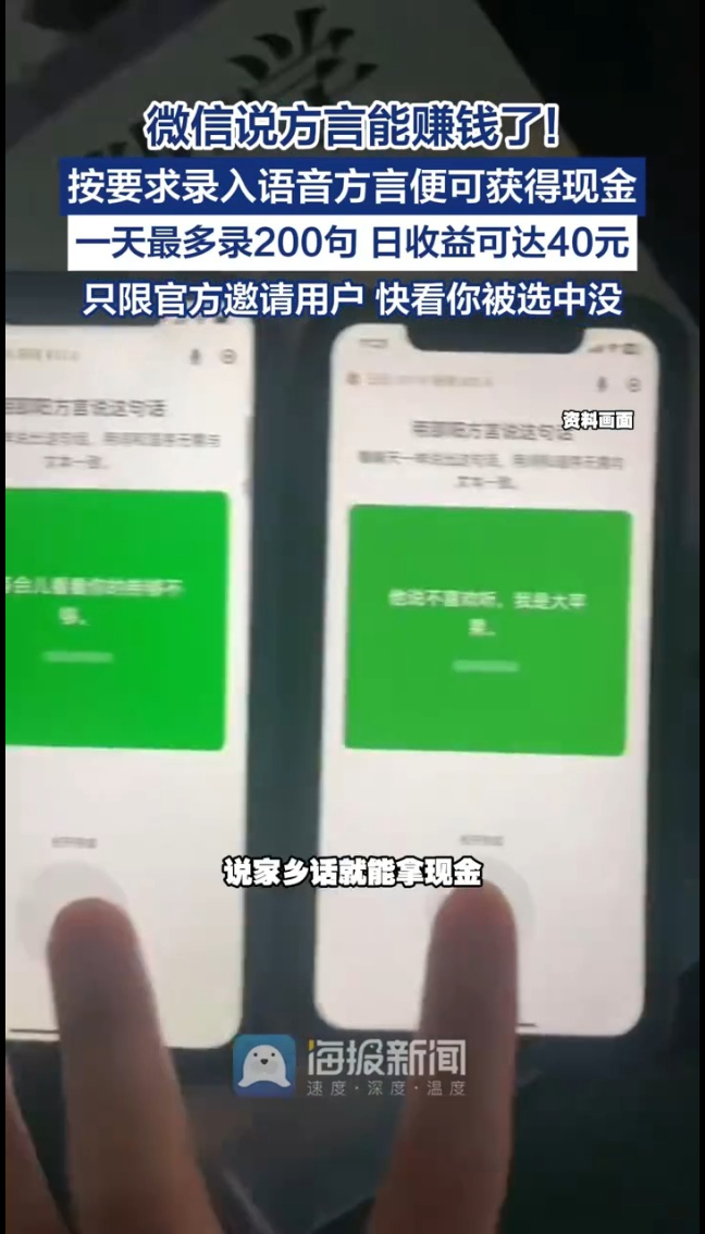 主播说|微信说方言能赚钱了!按要求录入语音方言便可获得现金