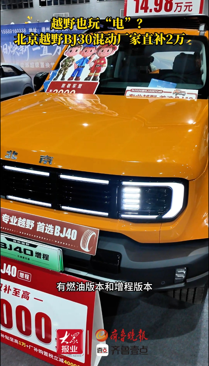 齐鲁德州车展|北京越野混动车展期间厂家直补2万齐鲁晚报·齐鲁壹点客户端 昨天23:04原创北京越野车展放大招!BJ40增程版,燃油、增程双版本可选;BJ30,轻混、纯油都有。车展期间混动版本厂家直补2万。齐鲁春季车展德州站4月10日—12日,在德州天衢国际会展中心等您来。本次车展将以超强品牌阵容、重磅新车首发、年度钜惠福利,为鲁西北消费者打造一场集赏车、购车、玩车于一体的春日汽车盛宴。(齐鲁晚报·齐鲁壹点 孙文丽)
