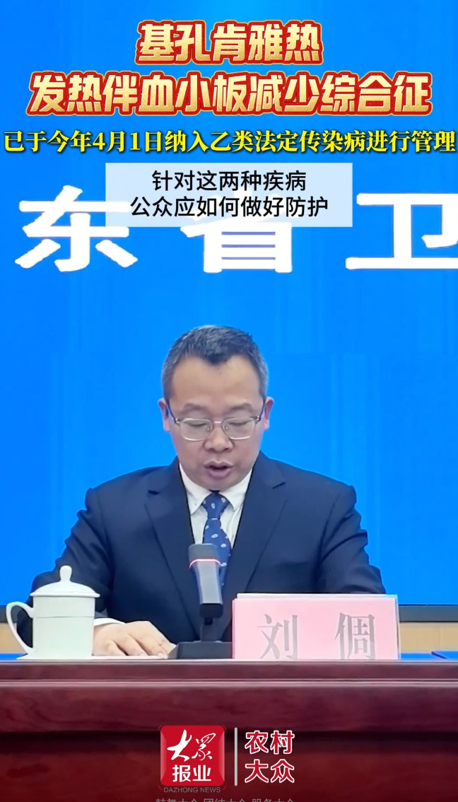 2026年山东省卫生健康委第3场“鲁医健康说”健康知识发布会。山东省疾病预防控制中心传染病防制所主任技师刘倜介绍,基孔肯雅热和发热伴血小板减少综合征正式纳入《中华人民共和国传染病防治法》规定的乙类传染病进行管理。基孔肯雅热是一种病毒性传染病,主要通过俗称花斑蚊或花蚊子的伊蚊叮咬传播。从我省情况来看,基孔肯雅热以境外或省外输入病例为主,暂未报告过基孔肯雅热本地病例,随着境内外往来增多,基孔肯雅热从境外、省外输入我省风险加大。