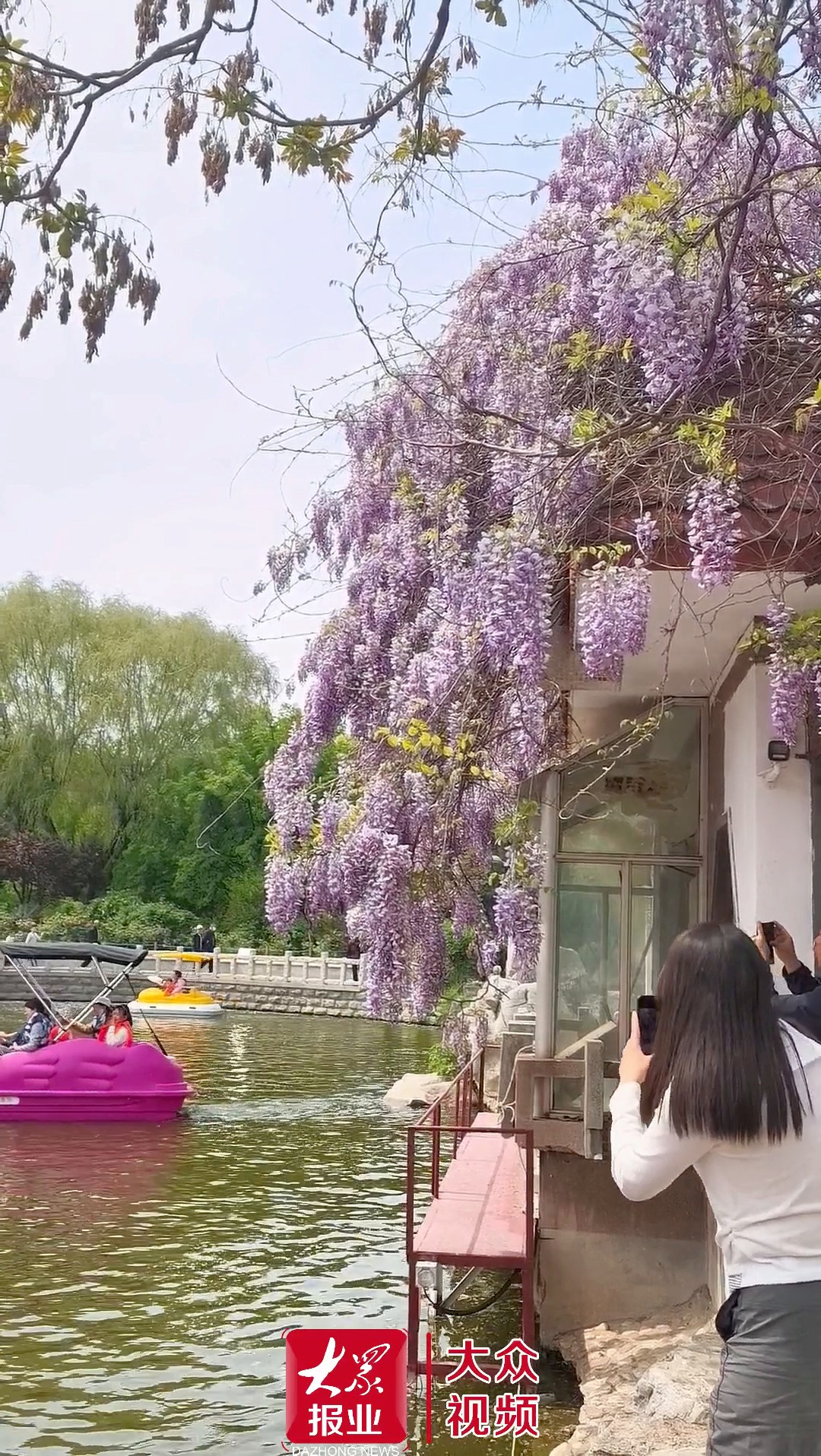 “紫藤挂云木,花蔓宜阳春” 李白曾点赞的紫藤花又已成瀑,千万别错过!大众新闻 | 10:26 现场大众新闻客户端 微信扫码扫码下载客户端一帘紫藤垂作瀑,漫卷云霞入画来。淡紫的花穗层层叠叠,倾泻而下,似流云轻垂,如紫雾漫溢。风过处,花影摇曳,恍若误入春日梦境,满眼皆是缱绻与浪漫。紫藤是传统的人文意境植物,是古代诗画的重要题材。唐代大诗人李白对紫藤花也甚是喜爱,曾做五言绝句《紫藤树》:“紫藤挂云木,花蔓宜阳春。密叶隐歌鸟,香风留美人。”(大众新闻记者 籍雅文)