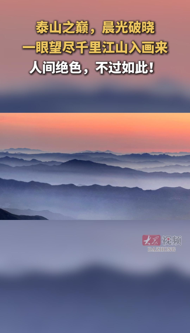泰山之巅,晨光破晓 一眼望尽千里江山入画来 人间绝色,不过如此!