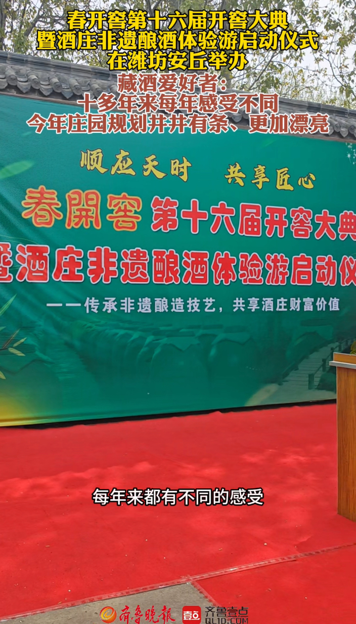 果然视频|第十六届春开窖大典举办,老藏家:每年都有新感受齐鲁晚报·齐鲁壹点客户端 昨天22:00原创4月11日,“春开窖第十六届开窖大典暨酒庄非遗酿酒体验游启动仪式”在山东省安丘市景芝镇春开窖酒业公司举行。活动现场,一位多年参加开窖大典的藏酒爱好者表示,十多年来每年都有不同感受,今年酒庄规划得更加井井有条、环境更加漂亮;通过参观酒窖了解到,该酒秉持纯粮酿造工艺,所酿白酒窖香浓郁、入口绵柔,酒质不错。 齐鲁晚报·齐鲁壹点 王佳潼 张晓慧