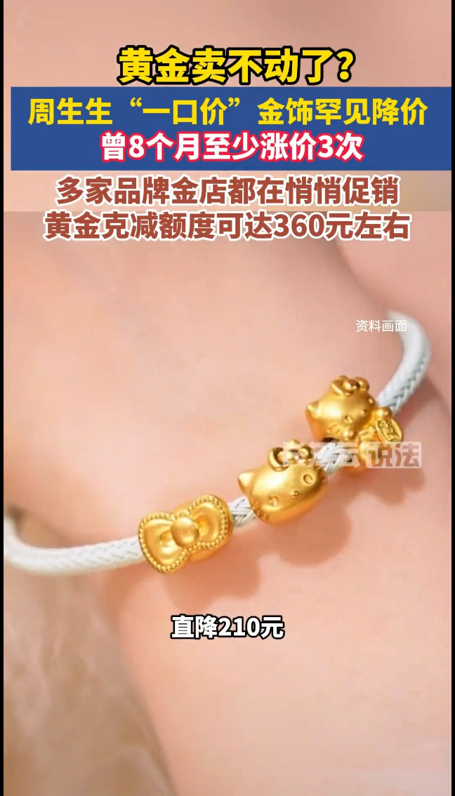 4月10日,周生生的“一口价”转运珠系列罕见地下调了价格。而在此之前,从去年9月至今,转运珠已经连涨了至少三次。除了周生生的明降,其他传统金饰品牌虽然没有公开降价,但折扣力度在悄悄加码。杭州一位代购透露,最近周大福每克可以减240元左右,而2月份只能拿到150元至180元的克减。而六福珠宝、潮宏基、谢瑞麟等品牌的代购克减甚至可以做到360元左右。 杭州大厦老铺黄金也迎来了最大促销。 距离上一次推出满减活动不到半个月,10日,老铺黄金的会员再次收到活动短信:4月11日-19日杭州大厦“嘉年华”活动期间,老铺黄金再次推出每满1000元立减100元的优惠,另外还有商场高额赠券、满额赠礼活动。其中,单日实付金额每满25万元赠送一枚5克的金币。 在全国最大的黄金批发集散地深圳水贝市场,一位商家透露:之前到处溢价都拿不到货,现在没有溢价了。但不管是黄金、铂金还是白银,最近普遍无人问津。“大家都在观望,怕金价继续跌,也怕买了之后卖不掉。”(FM93交通之声)