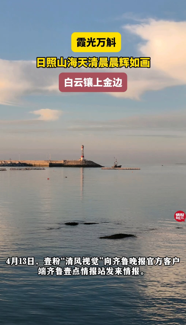 天气情报站|霞光万斛!日照山海天清晨晨辉如画,白云镶上金边 10:05 大众报业·齐鲁壹点 微信扫码扫码下载客户端4月13日,壹粉“清风视觉”向齐鲁晚报官方客户端齐鲁壹点情报站发来情报。4月13日的清晨,日照山海天渔港被一层温柔的晨光唤醒。澄澈的蓝天里,蓬松的白云被朝阳镀上了淡淡的金边,悠悠地飘在澄澈的海面上。远处,现代化的高楼大厦在薄雾中若隐若现,与眼前这片充满烟火气的渔港遥遥相望,勾勒出山海天独有的“城海共生”画卷。随着第一缕阳光穿透云层,渔港里响起了熟悉的马达声。