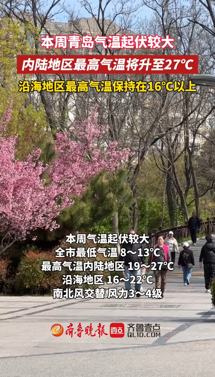果然视频丨内陆地区最高将升至27℃!青岛本周气温起伏较大