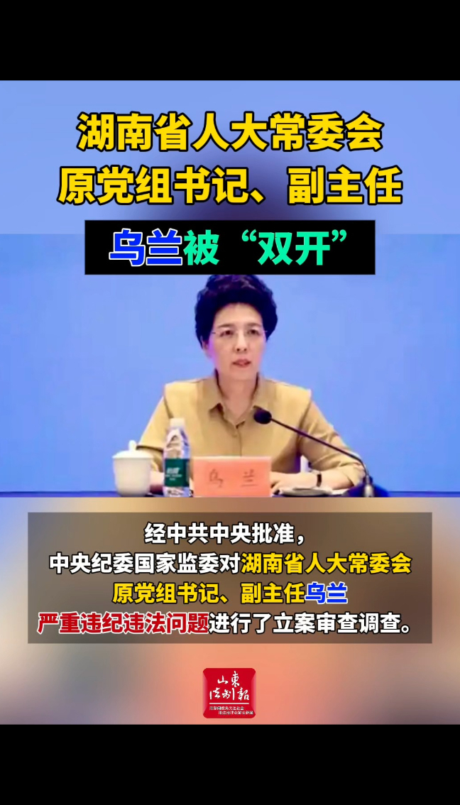 湖南省人大常委会原党组书记、副主任乌兰被“双开”