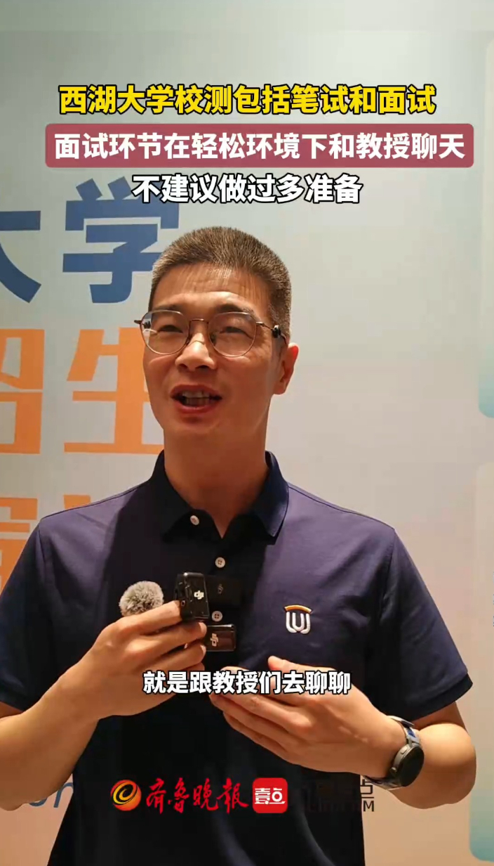 果然视频丨西湖大学山东综合评价校考揭秘,不建议做过多准备齐鲁晚报·齐鲁壹点客户端 11:49原创 2026年西湖大学首次在山东省招收本科生。4月12日,在西湖大学本科招生青岛宣讲会上,该校本科招生办负责人徐勤荣表示,西湖大学校考包括笔试和面试两部分。面试环节,将为学子创设一个轻松的环境和教授聊天,聊兴趣聊对某件事的看法,不建议做过多准备。 (齐鲁晚报·齐鲁壹点 李珍梅)