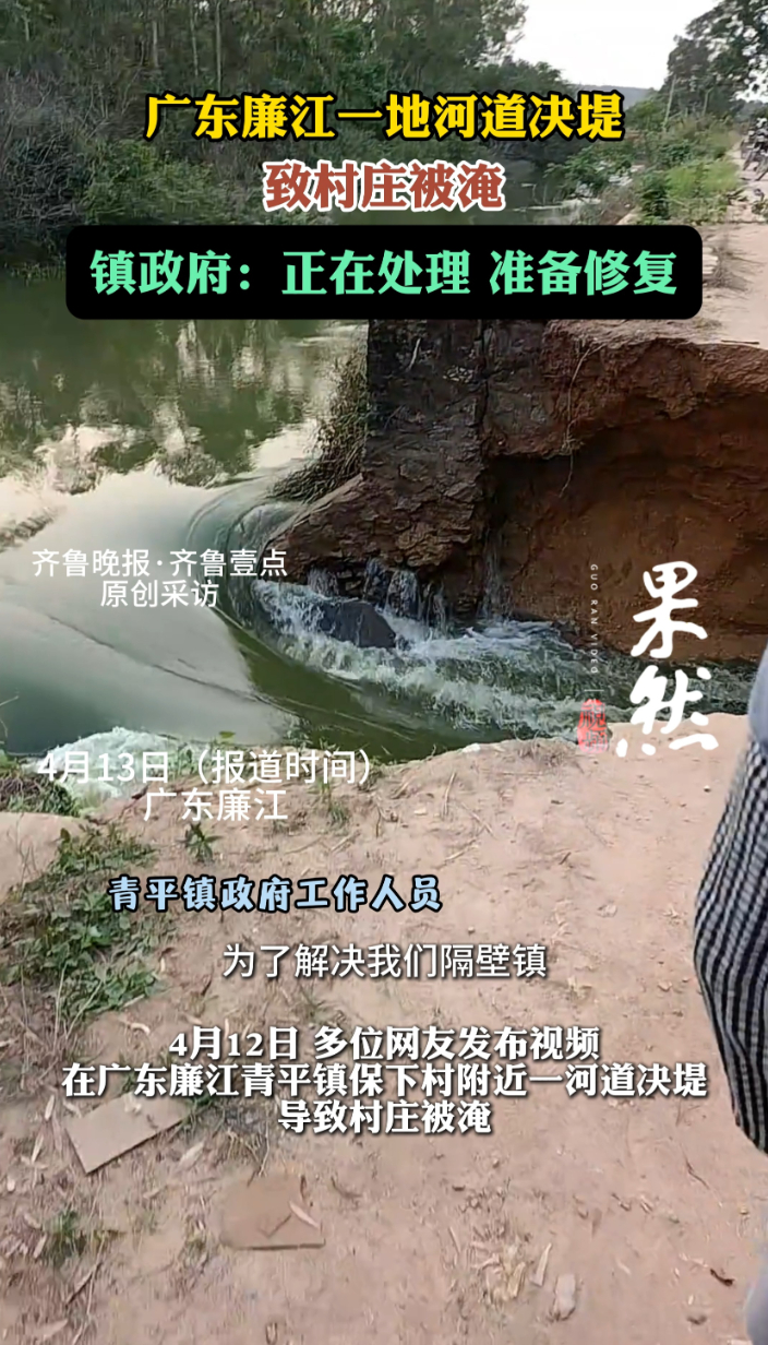果然视频丨广东廉江一地河道决堤致村庄被淹,当地:正在处理齐鲁晚报·齐鲁壹点客户端 13:53原创4月12日,多位网友发布视频,在广东廉江青平镇保下村附近一河道决堤导致村庄被淹。4月13日,青平镇政府工作人员告诉齐鲁晚报·齐鲁壹点记者,为解决隔壁镇用水问题,当地一水库开闸放水导致河道决堤。目前,工作人员正在处理,受灾情况正统计。(齐鲁晚报·齐鲁壹点爆料电话:0531-85193656;邮箱:405617016@qq.com)(齐鲁晚报·齐鲁壹点 刘志坤 实习生 高文珊)