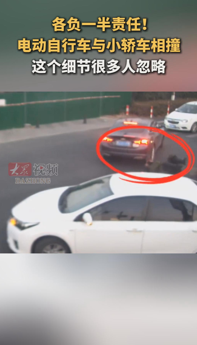 各负一半责任!电动自行车与小轿车相撞,这个细节很多人忽略