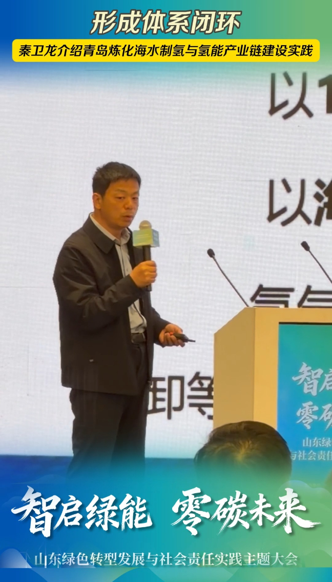 “碳”索者说丨形成体系闭环!秦卫龙介绍青岛炼化海水制氢与氢能产业链建设实践 17:35 原创大众新闻 微信扫码扫码下载客户端4月13日,山东绿色转型发展与社会责任实践主题大会在济南举行。会上,中国石化青岛炼油化工有限责任公司工艺专家、“东方氢岛”项目技术负责人秦卫龙介绍青岛炼化海水制氢与氢能产业链建设实践。(大众新闻记者 张骏峰 宋伟 申家鑫)