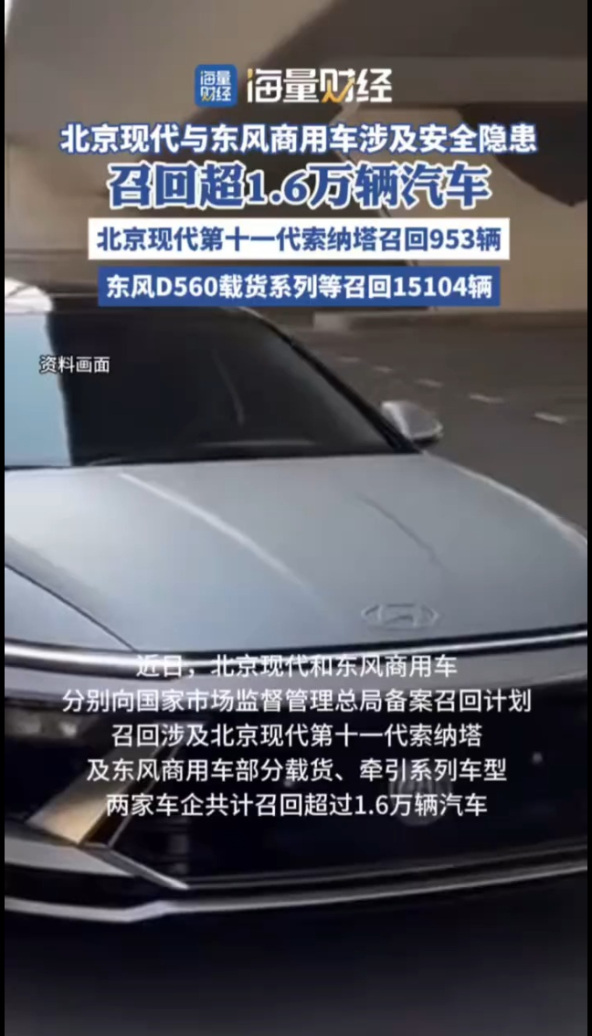 海量财经丨存在安全隐患!北京现代与东风商用车召回超1.6万辆汽车