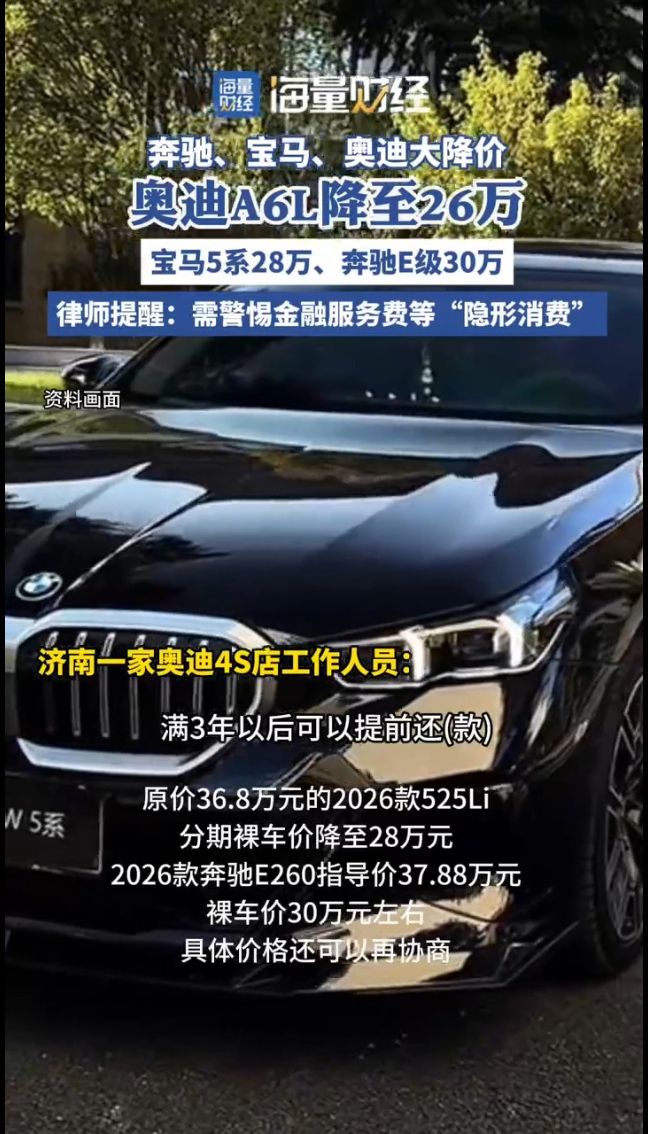 海量财经丨BBA大降价:奥迪A6L降至26万,宝马5系28万,奔驰E级30万