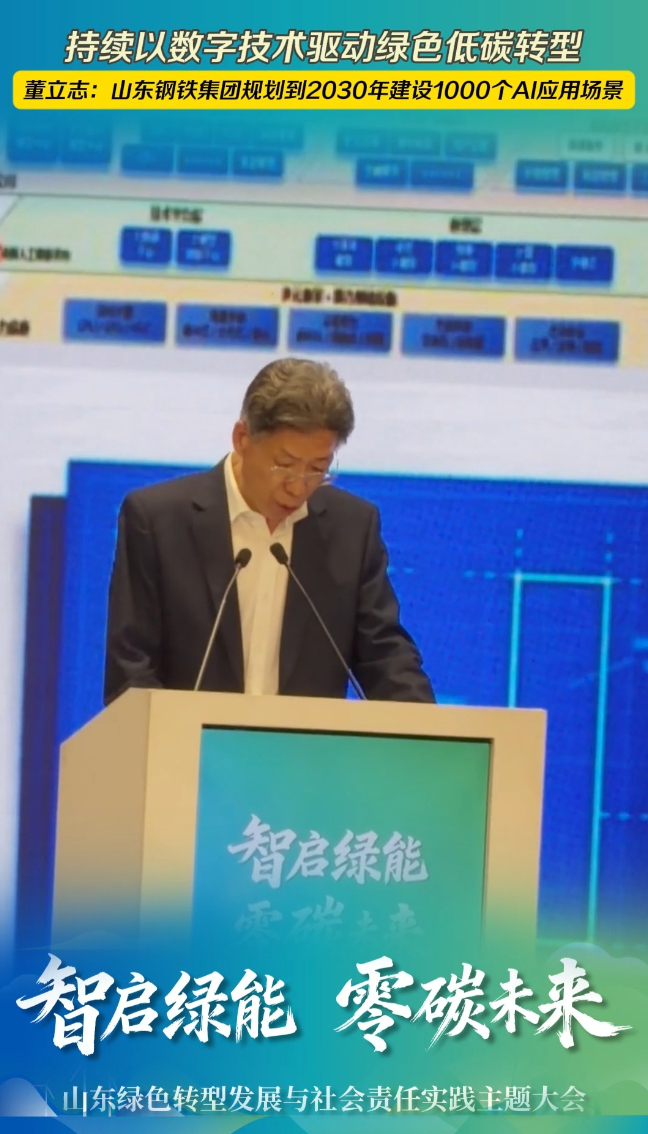 “碳”索者说丨持续以数字技术驱动绿色低碳转型!董立志:山东钢铁集团规划到2030年建设1000个AI应用场景 21:06 原创大众新闻 微信扫码扫码下载客户端4月13日,山东绿色转型发展与社会责任实践主题大会在济南举行。会上,山东钢铁集团有限公司副总裁、总法律顾问、首席合规官董立志谈到,山东钢铁集团规划到2030年建设1000个AI应用场景,持续以数字技术驱动绿色低碳转型。(大众新闻记者 宋伟 申家鑫 策划 马玉峰 张骏峰)