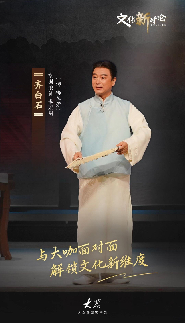 文化“新”对论丨新编京剧《齐白石》山东展演!看李宏图演绎梅兰芳 15:00 原创大众新闻 微信扫码扫码下载客户端一笔一画绘风骨,一唱一和传文脉。近日,斩获第十七届精神文明建设“五个一工程”优秀作品奖、第十八届文华剧目奖、第十一届北京市文学艺术奖的新编京剧《齐白石》,登陆山东省会大剧院。本期「文化“新”对论」特邀嘉宾为剧中梅兰芳扮演者、著名叶派小生李宏图。精彩访谈即将上线,敬请期待!创意:蔡可心设计:尹亚琪 蔡可心统筹:田可新
