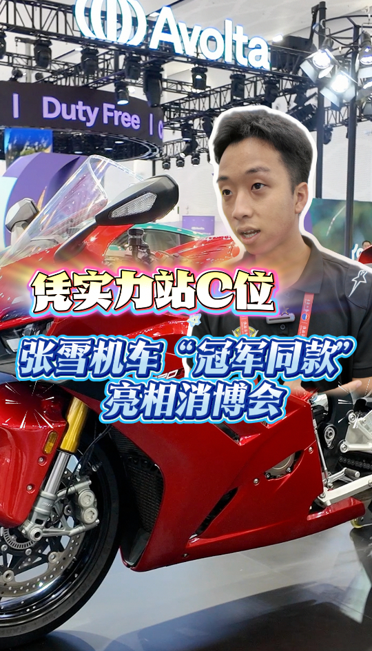凭实力站C位!张雪机车“冠军同款”亮相消博会大众新闻 07:58现场在第六届中国国际消费品博览会上,张雪机车“冠军同款”在一众豪华跑车中稳居C位,现场工作人员告诉记者,为了大家更方便、近距离去参观和了解张雪机车,组委会让他们放在了最中间的位置。(大众新闻记者 吕乐 孙源泽 实习生 王靖雅)