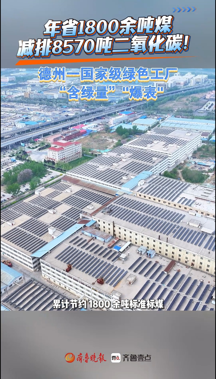 年减排8570吨二氧化碳!德州一绿色工厂“含绿量”"爆表"齐鲁晚报·齐鲁壹点客户端 09:45原创年省1800余吨煤,减排8570吨二氧化碳!德州一国家级绿色工厂“含绿量”"爆表"(齐鲁晚报·齐鲁壹点 郭华春)