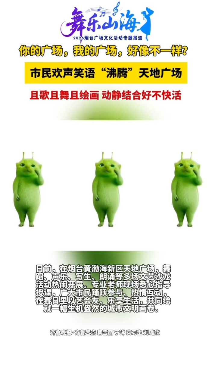 果然视频|烟台天地广场文艺沙龙热闹开场!市民以艺会友乐享春日齐鲁晚报·齐鲁壹点客户端 13:27原创你的广场,我的广场,好像不一样?日前,在烟台黄渤海新区天地广场,舞蹈、声乐、写生、朗诵等多场文艺沙龙活动热闹开展。专业老师现场悉心指导授课,广大市民踊跃参与、热情互动,在春日里以艺会友、乐享生活,共同绘就一幅生机盎然的城市文明画卷。 (齐鲁晚报·齐鲁壹点 于洋 秦雪丽 实习生 刘璐欣)