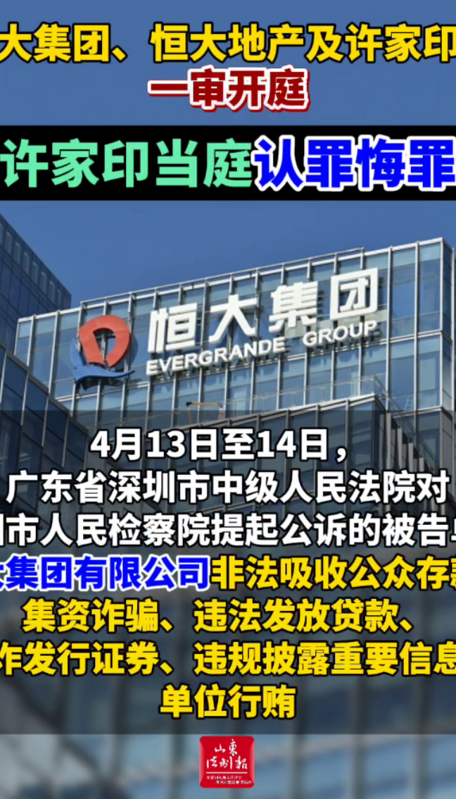 恒大集团、恒大地产及许家印案一审开庭,许家印当庭认罪悔罪