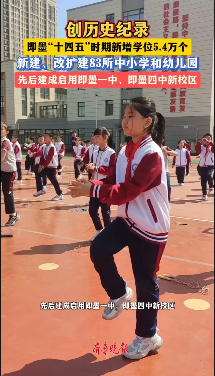 果然视频丨创历史纪录 即墨“十四五”时期新增学位5.4万个齐鲁晚报·齐鲁壹点客户端 15:32原创4月14日,即墨区“强作风、抓落实、开新局”新闻发布会教育体育局专场在书香小学举行。据悉,“十四五”时期,即墨全区新建、改扩建83所中小学和幼儿园,新增学位5.4万个。先后建成启用即墨一中、即墨四中新校区,极大地改善了学校办学条件;龙泉新高中20栋楼完成主体封顶,职业教育园所有建筑单体全部完工。(齐鲁晚报·齐鲁壹点 宋祖锋)