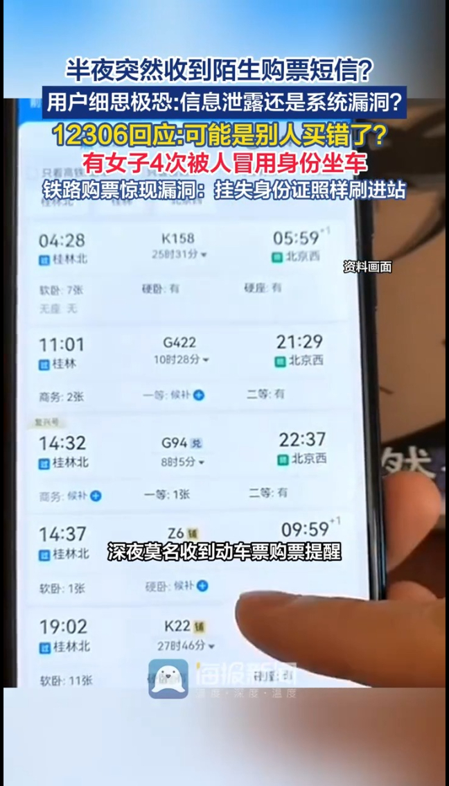 近期不少网友遇到怪事,深夜莫名收到动车票购票提醒,车次行程全都陌生,问遍亲友都无人知晓。大家纷纷疑惑,到底是个人信息泄露,还是铁路购票系统存在漏洞?