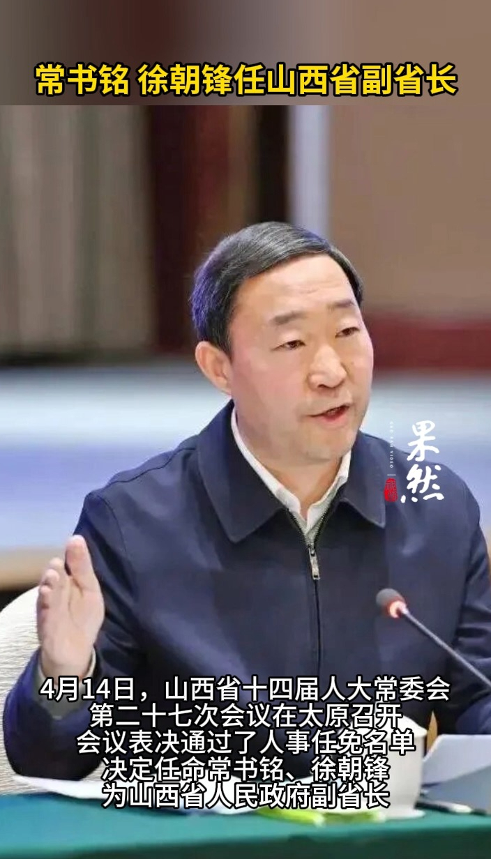 常书铭、徐朝锋任山西省副省长 17:18 原创齐鲁晚报·齐鲁壹点客户端 微信扫码扫码下载客户端4月14日,山西省十四届人大常委会第二十七次会议在太原召开。会议表决通过了人事任免名单。决定任命常书铭、徐朝锋为山西省人民政府副省长。