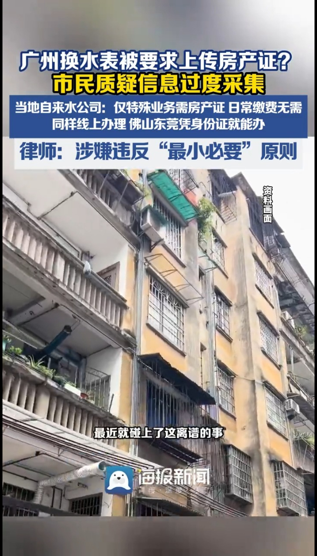 主播说 | 广州换水表被要求上传房产证?市民质疑信息过度采集,当地自来水公司:仅特殊业务需房产证 日常缴费无需