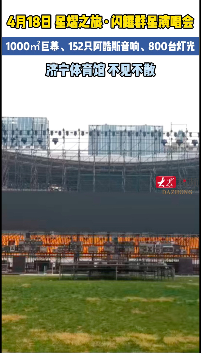 4.18不见不散!群星演唱会正在济宁体育中心搭建舞台大众新闻 昨天22:49原创4.18“星熠之旅・闪耀济宁”群星演唱会正在济宁体育中心搭建舞台。(大众新闻记者 吕光社 视频制作 张颖 通讯员 杜星辰)