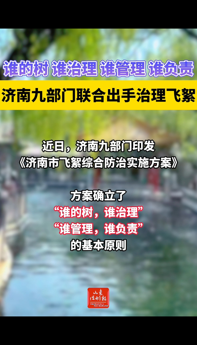 近日,济南九部门印发《济南市飞絮综合防治实施方案》。方案确立了“谁的树,谁治理”“谁管理,谁负责”的基本原则。