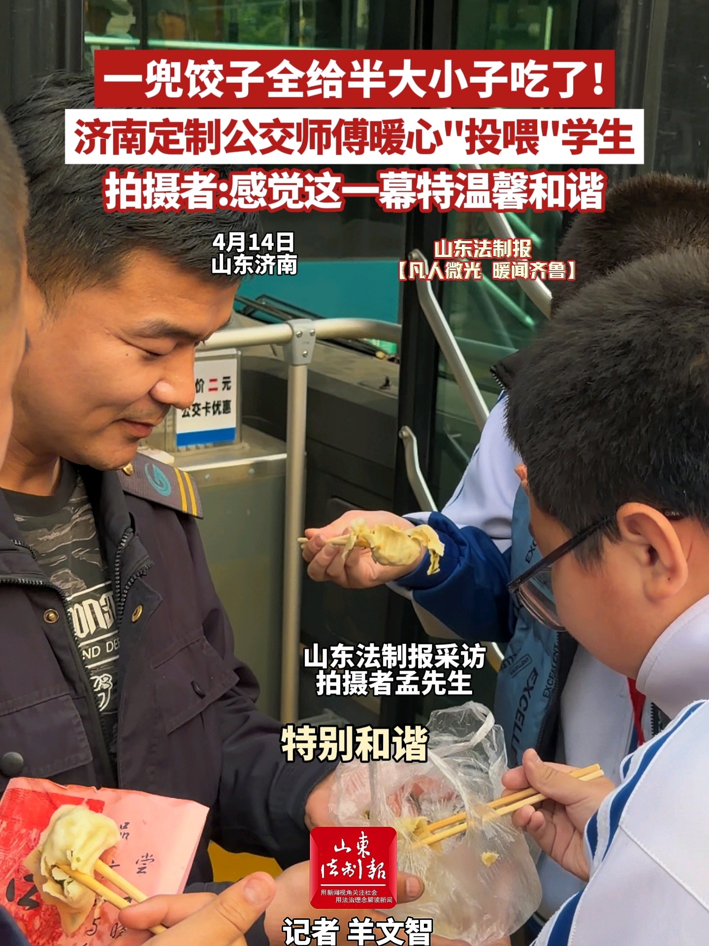一兜饺子全给半大小子吃了!济南定制公交师傅暖心“投喂”学生,拍摄者:感觉这一幕特温馨和谐山东法制报 | 昨天19:01 现场山东法制报 微信扫码扫码下载客户端4月14日傍晚,济南公交校园定制公交师傅肖友亮在接初中生们放学时,贴心拿出一兜热乎乎的水饺,还准备了一次性筷子,孩子们热热闹闹地吃了起来。这一幕被市民孟先生拍到,他称感觉这一幕特别温馨和谐。(大众新闻·山东法制报记者 羊文智)