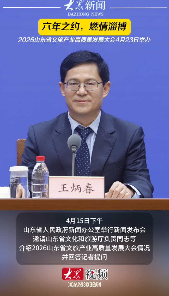 4月23日淄博见!好客山东,燃情上线大众新闻 | 昨天20:06 原创大众新闻·大众日报 微信扫码扫码下载客户端4月15日下午,山东省人民政府新闻办公室举行新闻发布会,邀请山东省文化和旅游厅负责同志等介绍2026山东省文旅产业高质量发展大会情况,并回答记者提问。(大众新闻记者 高广超 姜倩 策划 王雅洁)
