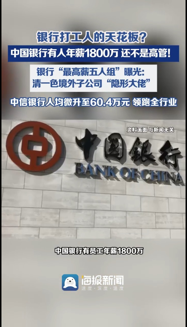 银行打工人的天花板,到底有多高?中国银行有员工年薪1800万。