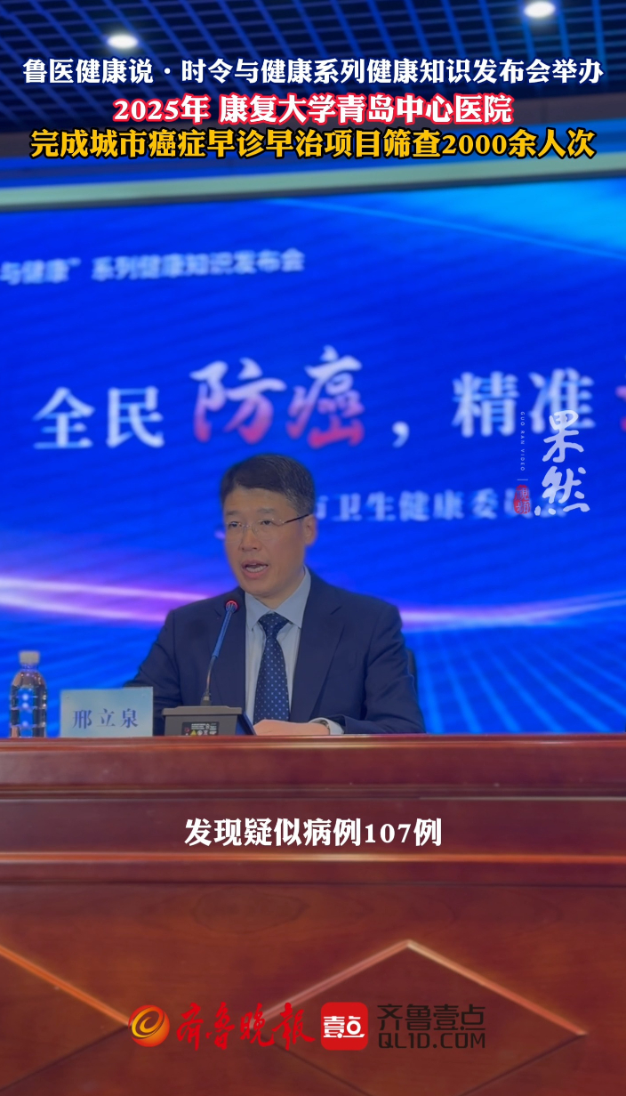 果然视频|康复大学青岛中心医院高质量完成城市癌症早诊早治项目齐鲁晚报·齐鲁壹点客户端 昨天21:11原创4月15日下午,全民防癌,精准治疗“鲁医健康说·时令与健康”系列健康知识发布会举办。康复大学青岛中心医院党委副书记、院长邢立泉发布表示,2025年,康复大学青岛中心医院高质量完成城市癌症早诊早治项,筛查2000余人次,发现疑似病例107例;开展农村上消化道癌机会性筛查2.23万例,检出早期癌54例,早诊率达到国际先进水平。 (齐鲁晚报·齐鲁壹点 李自强)