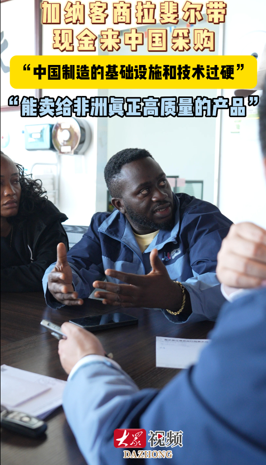 非洲客商拉斐尔:中国有很好的基础设施和技术,能卖给非洲真正高质量的产品大众新闻 08:25原创近日,来自加纳的客商拉斐尔专程带着现金来到临沂,在临沂金亿博进出口有限公司直接现金下单,采购了该公司的纸巾。拉斐尔在参观临沂金亿博的生产工厂后称赞:“中国有很好的基础设施和技术,我们相信中国可以卖给非洲大量高质量产品,这是我们选择来中国做生意的原因”。(大众新闻记者 石少汛 马海燕 李钦鑫 策划 马玉峰 马海燕)